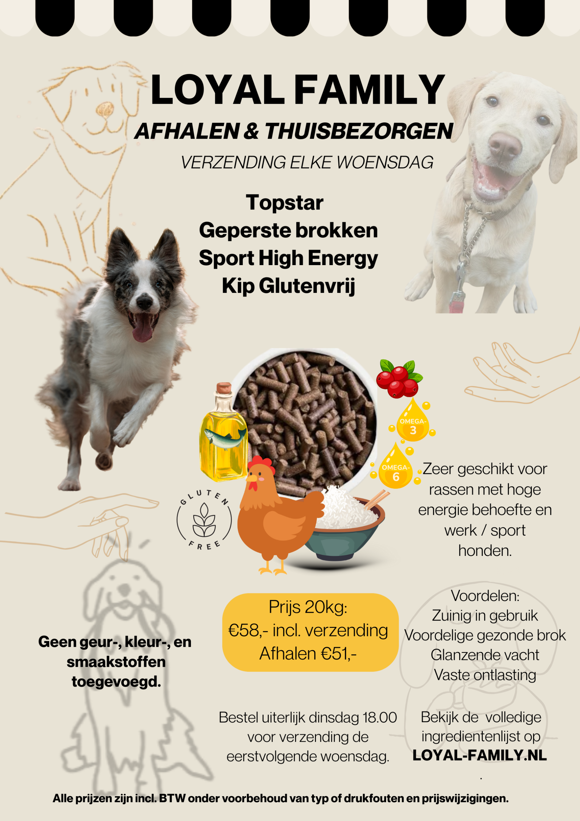 Ideaal voor sporthonden, werkhonden en actieve huishonden die behoefte hebben aan krachtige maar licht verteerbare voeding.